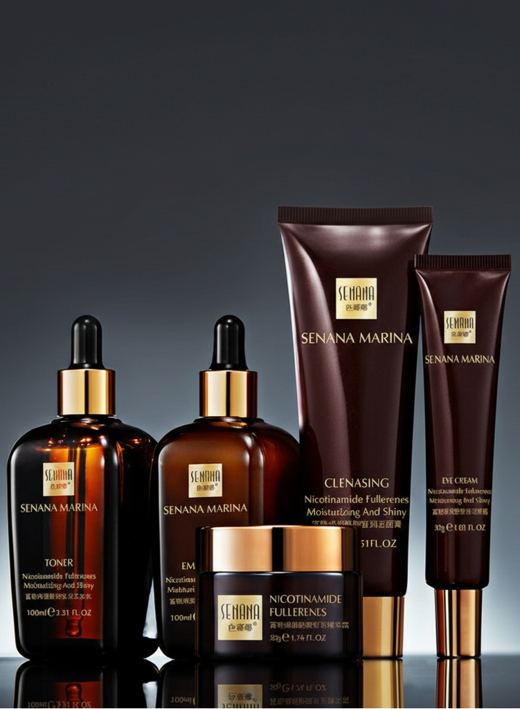 Transform your daily routine with the Senana Marina 5-piece set, featuring Fullerene and Nicotinamide for ultimate hydration and skin restoration. Achieve a radiant, healthy glow with this complete universal skincare kit designed to moisturize and revitalize all skin types.